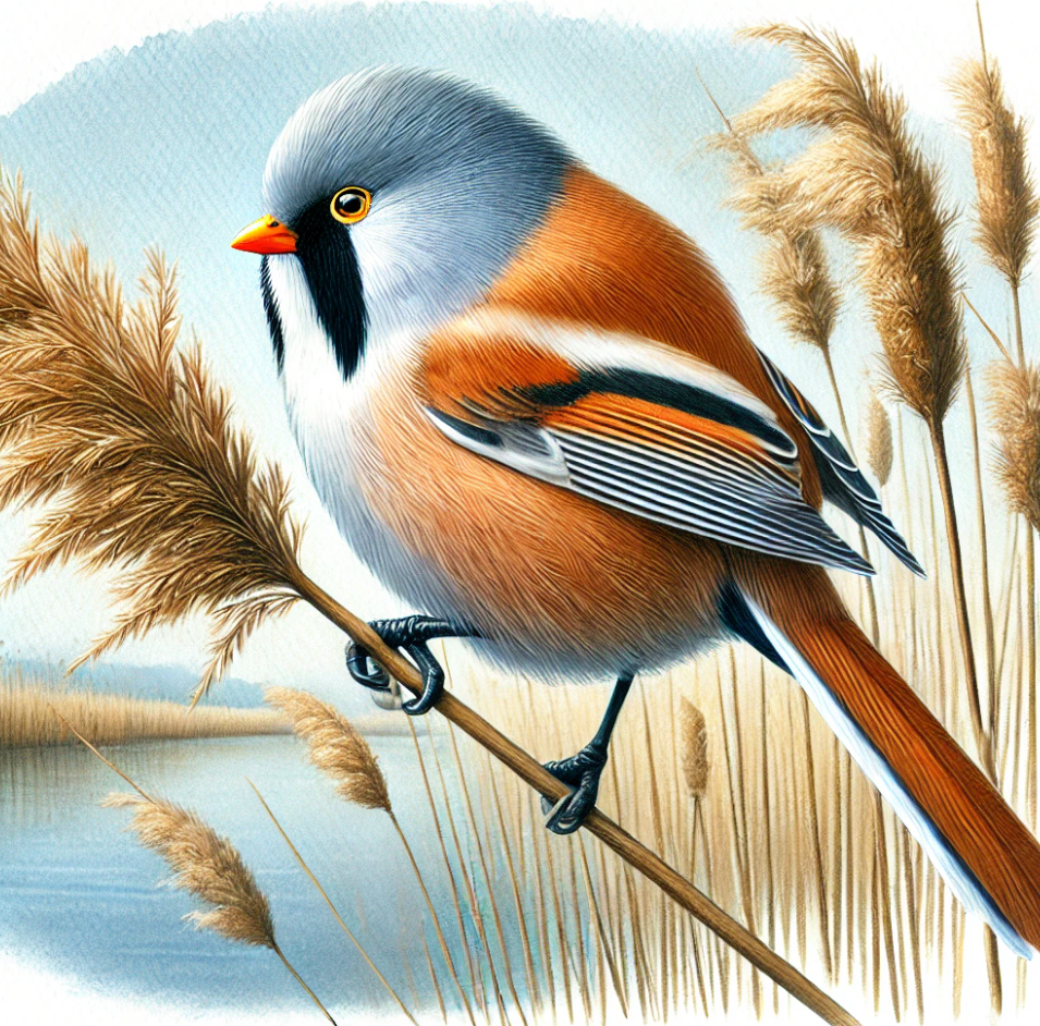 Bearded TitThe Bearded Tit, native to Europe and Asia, is known for its striking facial markings and reed bed habitat.