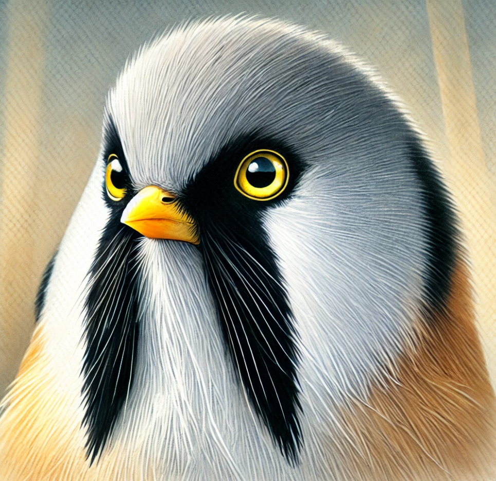 Bearded Tit's striking faceThe Bearded Tit's striking face, with its black "beard" and yellow eyes, symbolizes individuality and insight.