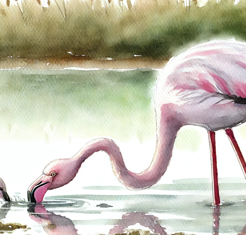 FlamingosFlamingos are large, pink birds with stilt-like legs and unique beaks, thriving in harsh wetland environments.