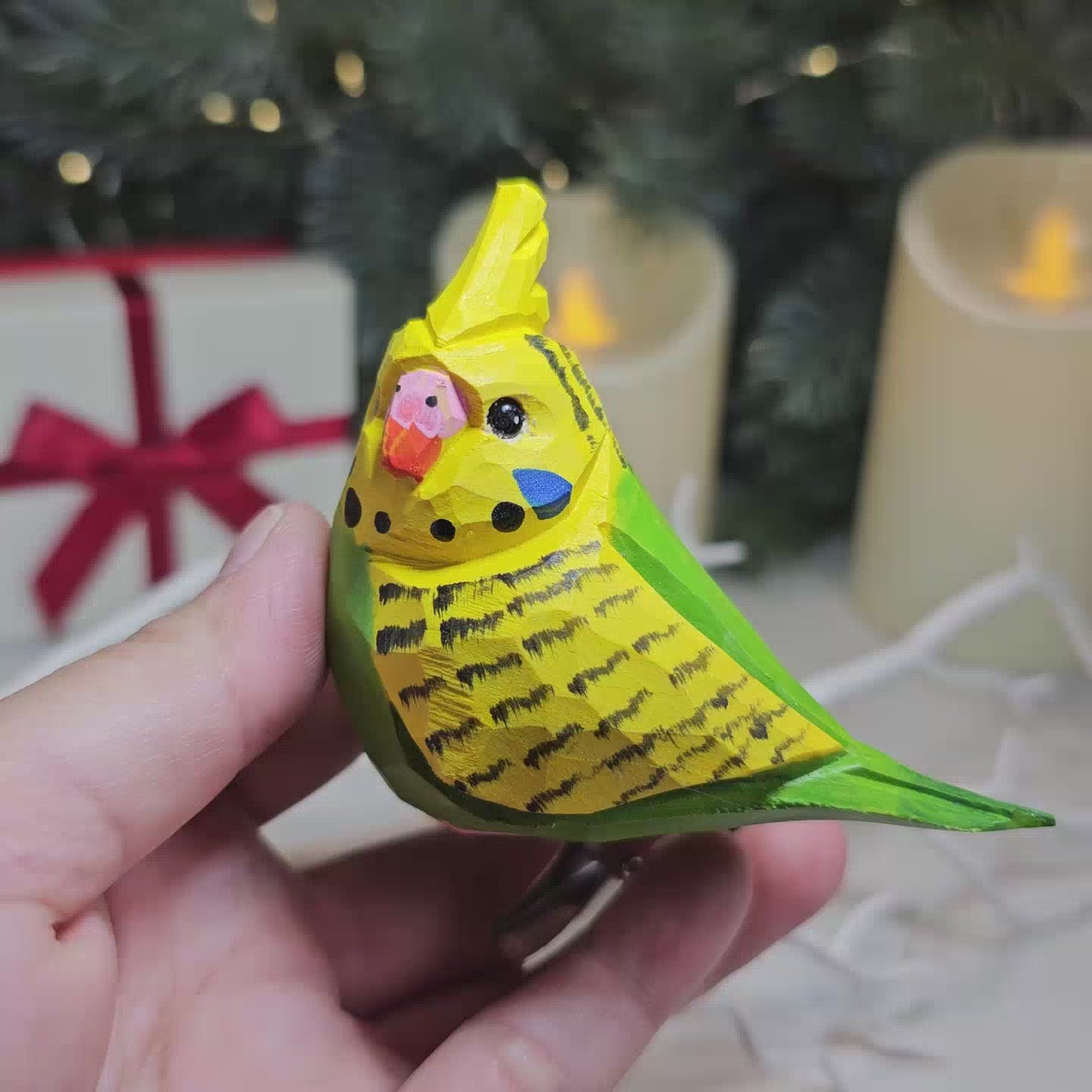 Enhance your holiday decor with our delightful Budgie Wooden Clip-on Christmas Tree Ornament. Handcrafted from premium wood, this charming budgie bird is perfect for bird enthusiasts and those who appreciate nature-inspired decorations. Each ornament is meticulously painted in vibrant colors, adding life and personality to your Christmas tree. The convenient clip-on mechanism ensures easy and secure attachment to any branch, wreath, or garland.