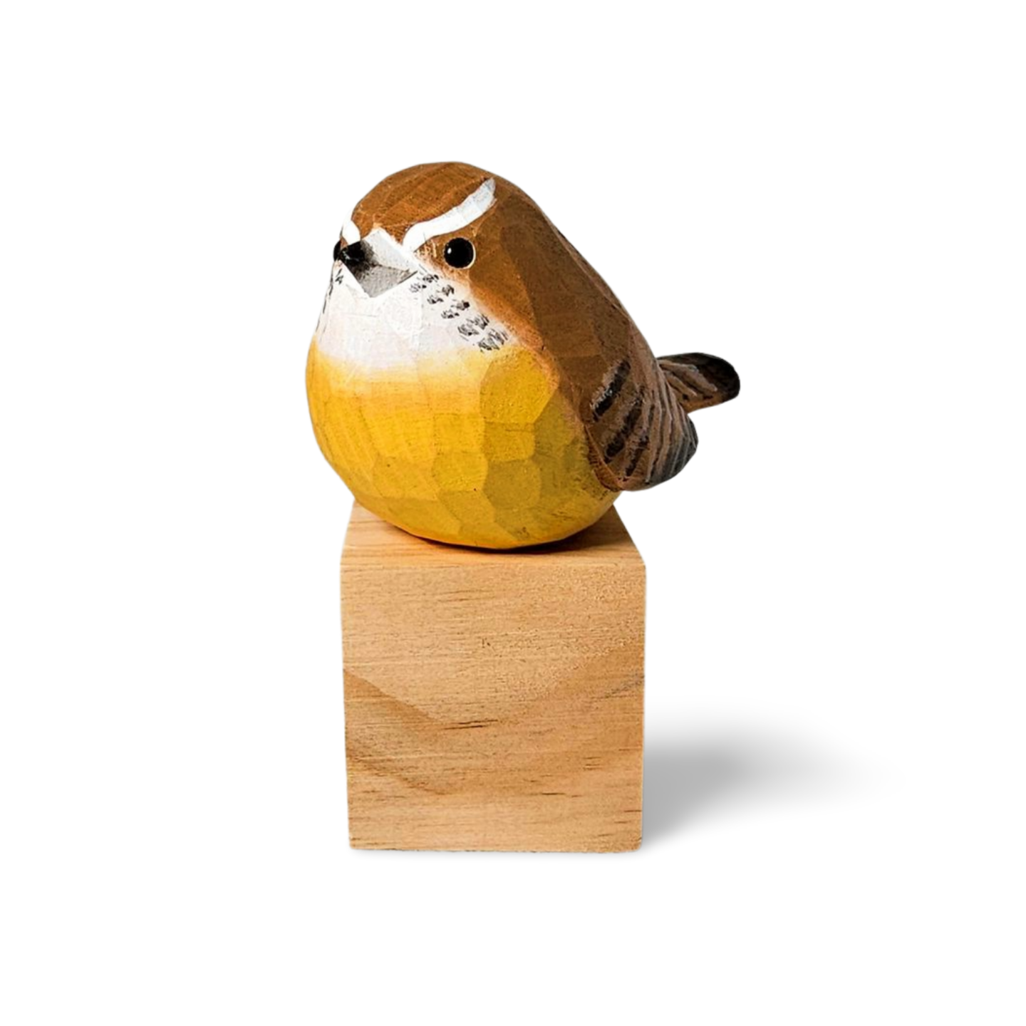 Our Carolina Wren Sculpted Hand-Painted Wood Bird Figure is a stunning piece of art that brings the charm of nature into your home. Expertly crafted from high-quality wood and meticulously hand-painted, this lifelike bird sculpture is perfect for bird lovers and collectors. Whether displayed on a shelf, mantel, or desk, this beautiful Carolina Wren figure adds a touch of elegance and nature-inspired beauty to any space.