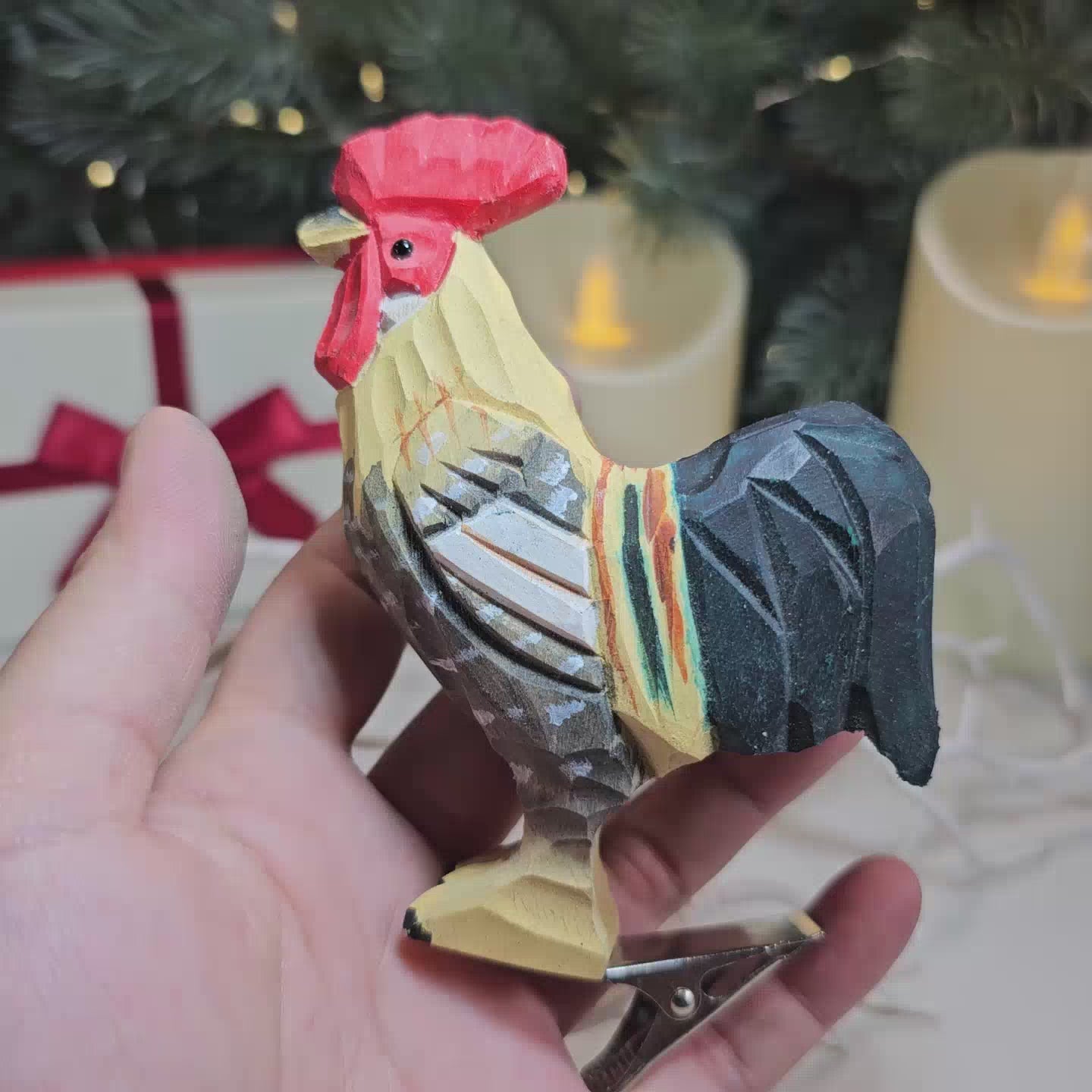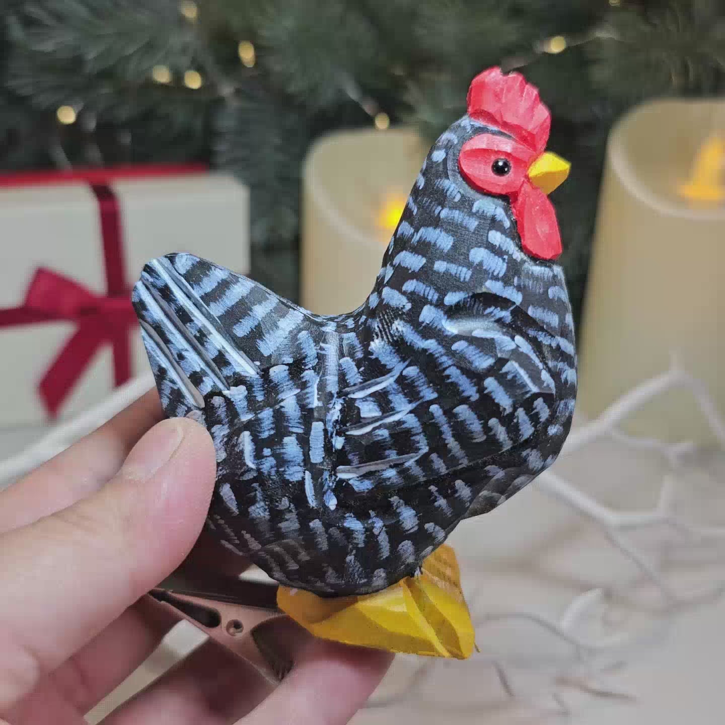 Embrace the festive spirit with our Chicken Wooden Clip-on Christmas Tree Ornament. This charming decoration is handcrafted from high-quality wood, making it a delightful addition for those who enjoy farm-inspired or whimsical decor. Each chicken ornament is carefully hand-painted in vivid colors, bringing life and joy to your holiday setup. The practical clip-on design ensures hassle-free attachment to any branch, wreath, or garland, keeping your decoration safely in place.