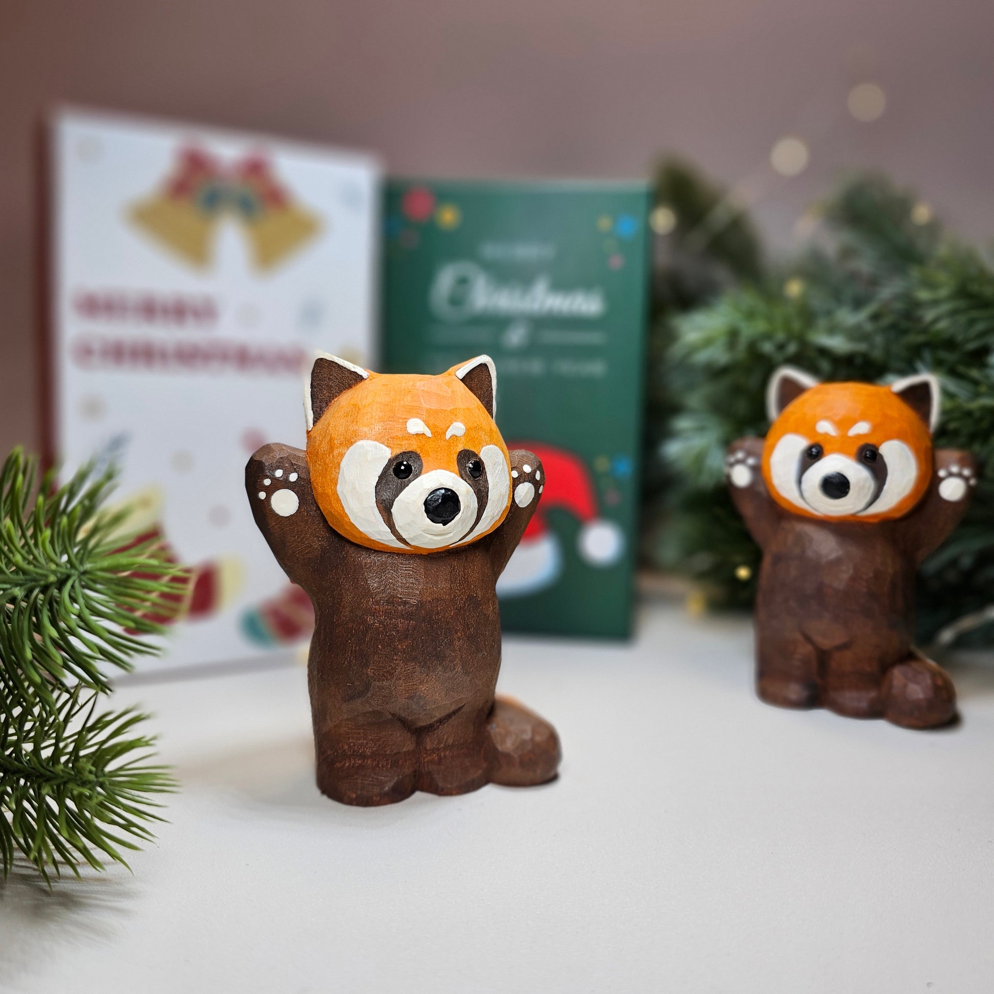 Bring a touch of the wild into your home with our Handcrafted Hand-Painted Red Panda Wood Sculpture. Beautifully carved by expert artisans from sustainable basswood, this exquisite piece captures the playful and curious nature of the beloved red panda. Each sculpture is hand-painted, showcasing intricate details and vibrant colors that highlight the artisan's skill. Perfect as a gift for wildlife enthusiasts or as an elegant addition to your living room or office decor, this sculpture is coated with a natural finish to ensure lasting beauty and durability. Dimensions: 9 cm tall.