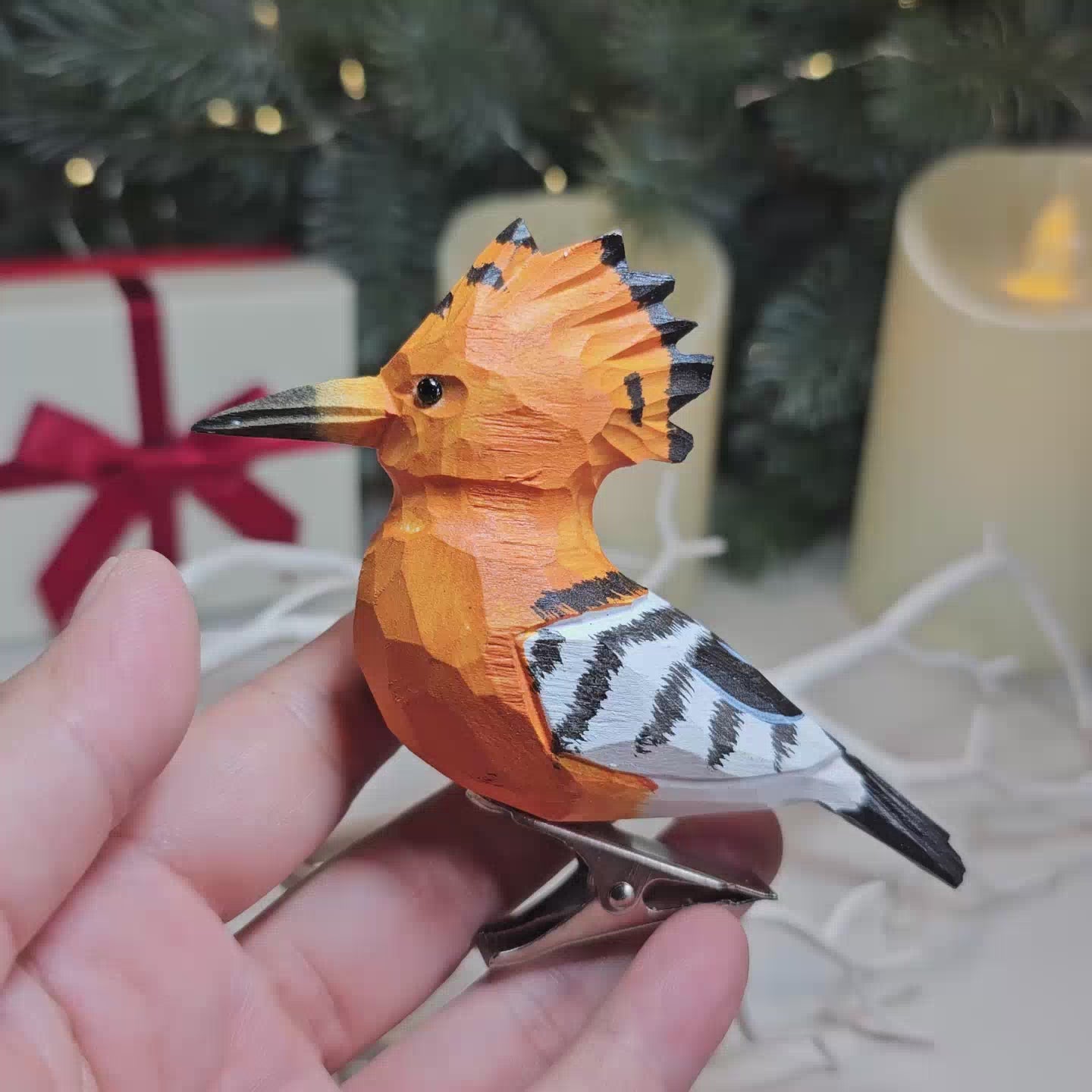 Enhance your holiday décor with an exotic flair using our Hoopoe Wooden Clip-on Christmas Tree Ornament. This captivating ornament is crafted with precision from high-quality wood and features a stunning hand-painted hoopoe design. Perfect for bird enthusiasts and those desiring unique seasonal decorations, this ornament adds vibrancy and a touch of elegance to your festive arrangements. The easy-to-use clip-on design ensures a secure and hassle-free attachment to trees, wreaths, or garlands.