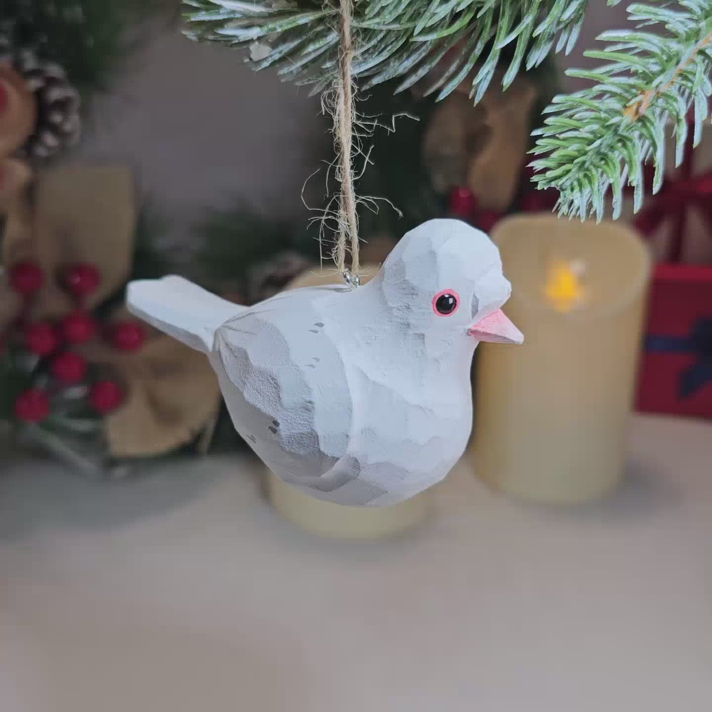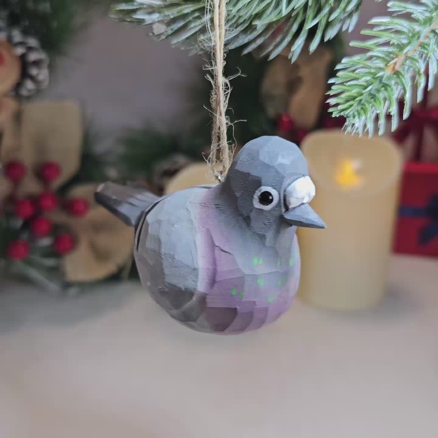 Each ornament is intricately hand-painted to showcase the pigeon's soft gray tones and graceful wings, symbolizing peace and harmony. Measuring approximately 2-3 inches in height, this ornament makes a sophisticated addition to your Christmas tree or festive display, enhancing its beauty and charm.