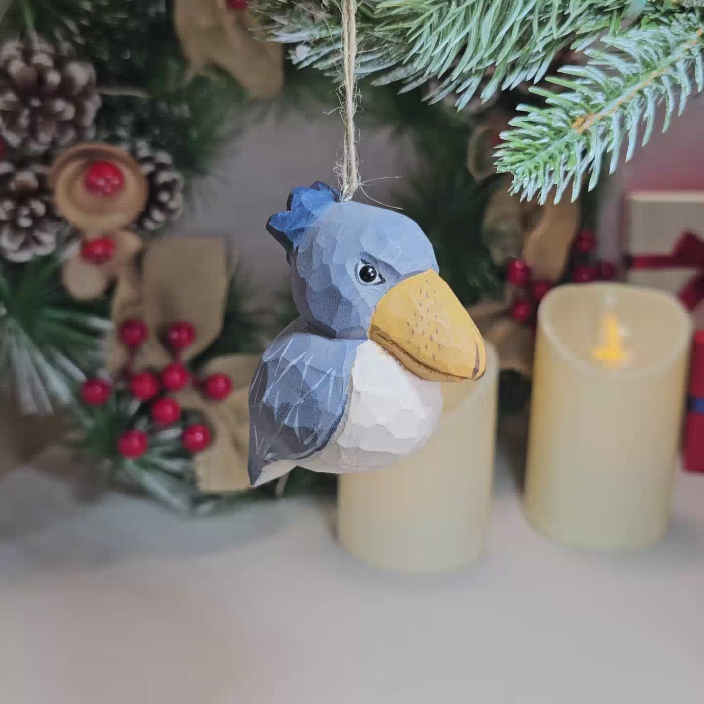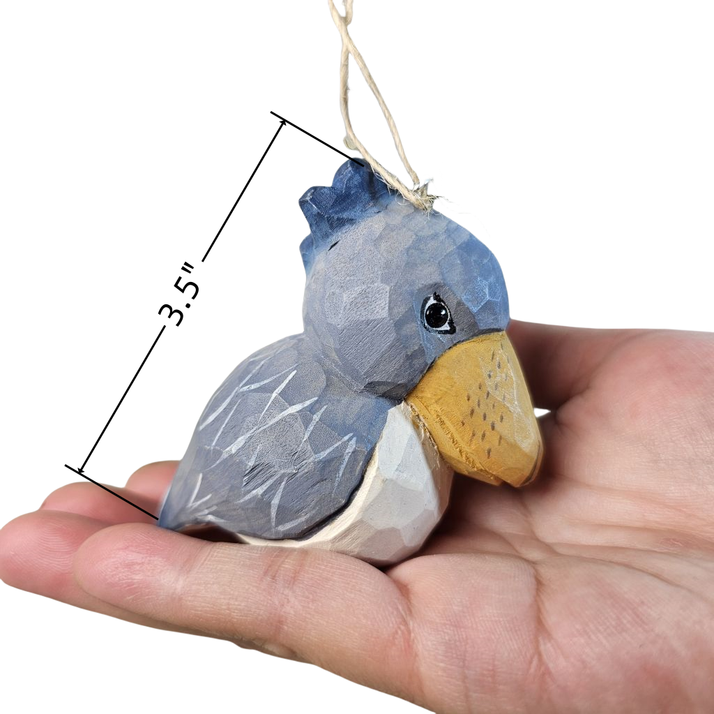 Each ornament is meticulously hand-painted to emphasize the shoebill's striking blue-gray hues and iconic broad bill, capturing its unmistakable characteristic with stunning detail. Measuring approximately 2-3 inches in height, this ornament serves as a captivating addition to any Christmas tree or holiday display, offering an inspiring focal point among your decor.