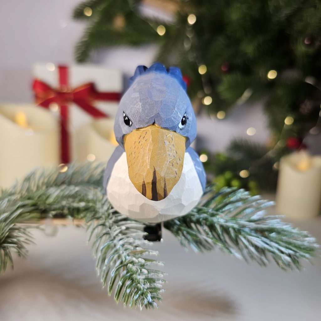 Make your holiday celebrations memorable with this extraordinary shoebill ornament, bringing a touch of exotic elegance to your Christmas tree.